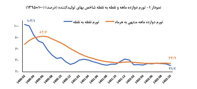 لازم به توضیح است؛ میزان تورم نقطه به نقطه شاخص بهای تولیدکننده نیز در پی استمرار پیگیری سیاست تثبیت اقتصادی و کاهش نوسانات نرخ ارز و همچنین ثبات قیمتی در کالاهای اساسی وارداتی، روند نزولی خود از ابتدای سال جاری را ادامه داده و با کاهش ۱۱.۲ واحد درصدی، از ۴۲.۴ درصد در اسفندماه ۱۴۰۱ به ۳۱.۲ درصد در دیماه سال جاری رسید.