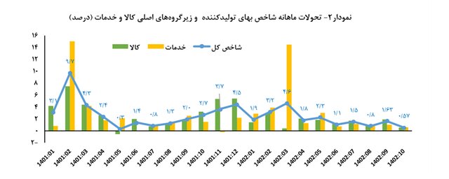 در مجموع از آنجا که شاخص بهای تولیدکننده به نوعی شاخص پیش نگر شاخص بهای کالاها و خدمات مصرفی است، انتظار میرود ادامهدار شدن روند کاهشی تحولات این شاخص منجر به کاهش تورم نقطه به نقطه شاخص بهای کالاها و خدمات مصرفی در ماههای آتی شود.
