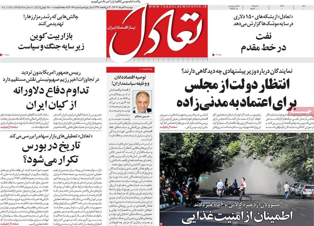 روزنامههای اقتصادی با پرداختن به موضوع جنگ مطالبی درباره مدیریت بازار در این شرایط منتشر کردند.source راهبری نوشته تولید و صادرات ماهیان خاویاری کشور افزایش یافت توقف صدور مجوز خریدوفروش آنلاین طلا