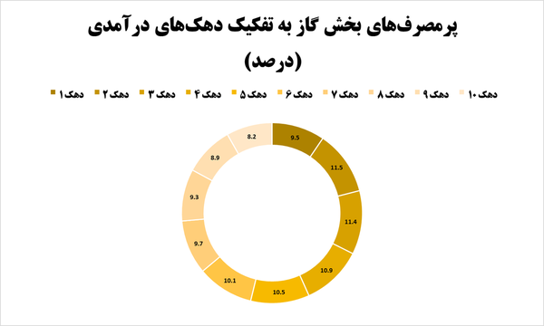 از میان ۵۰ درصد پُرمصرف‌های کشور، تنها ۹.۵ درصد متعلق به دهک اول (فقیرترین) و ۸.۲ درصد به دهک دهم (ثروتمندترین) است.