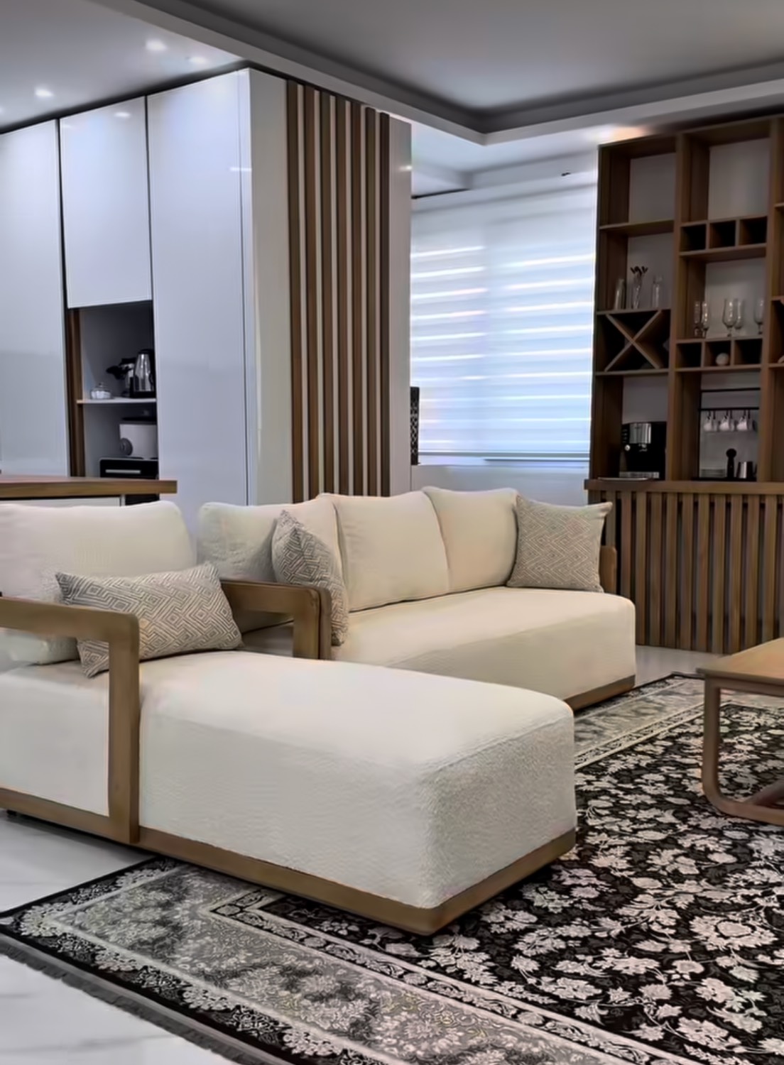 منزل مریم مومن با طراحی مدرن و دکوراسیونی مینیمال، فضایی گرم و دلنشین دارد. مبلمان روشن با کوسنهای ساده و هماهنگ، جلوهای آرامشبخش به سالن بخشیده است. میز ناهارخوری چوبی در مرکز خانه قرار دارد که با صندلیهای روکشدار سفید ترکیب شده و هارمونی زیبایی را با دیگر وسایل ایجاد کرده است. در پسزمینه، قفسههای چوبی مدرن برای نگهداری لیوانها و وسایل دکوری تعبیه شده و آشپزخانه سفید با کابینتهای براق، حس روشنایی و پاکیزگی را تقویت میکند. پنجرههای بزرگ با پردههای مدرن و نورپردازی سقفی نیز فضای خانه را روشن و دلباز کردهاند؛ فضایی که سادگی و شیک بودن را در کنار هم به نمایش میگذارد