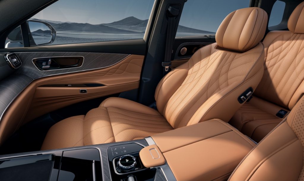 صندلی سرنشین جلو از نوع VIP بوده و تنظیمات مستقل با پشتی و تکیهگاه پای برقی دارد. در ردیف دوم، فاصلهی محوری ۲۸۲۰ میلیمتری، فضای پای فراوان و زاویهی راحت صندلیها، حس سفر در یک خودرو لوکس را القا میکند.