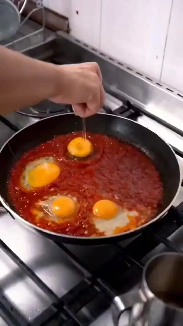 تخم مرغ ۲ عدد، رب گوجه فرنگی ۲ ق غ، نمک، فلفل سیاه، زردچوبه، روغن ۴ ق غ.
