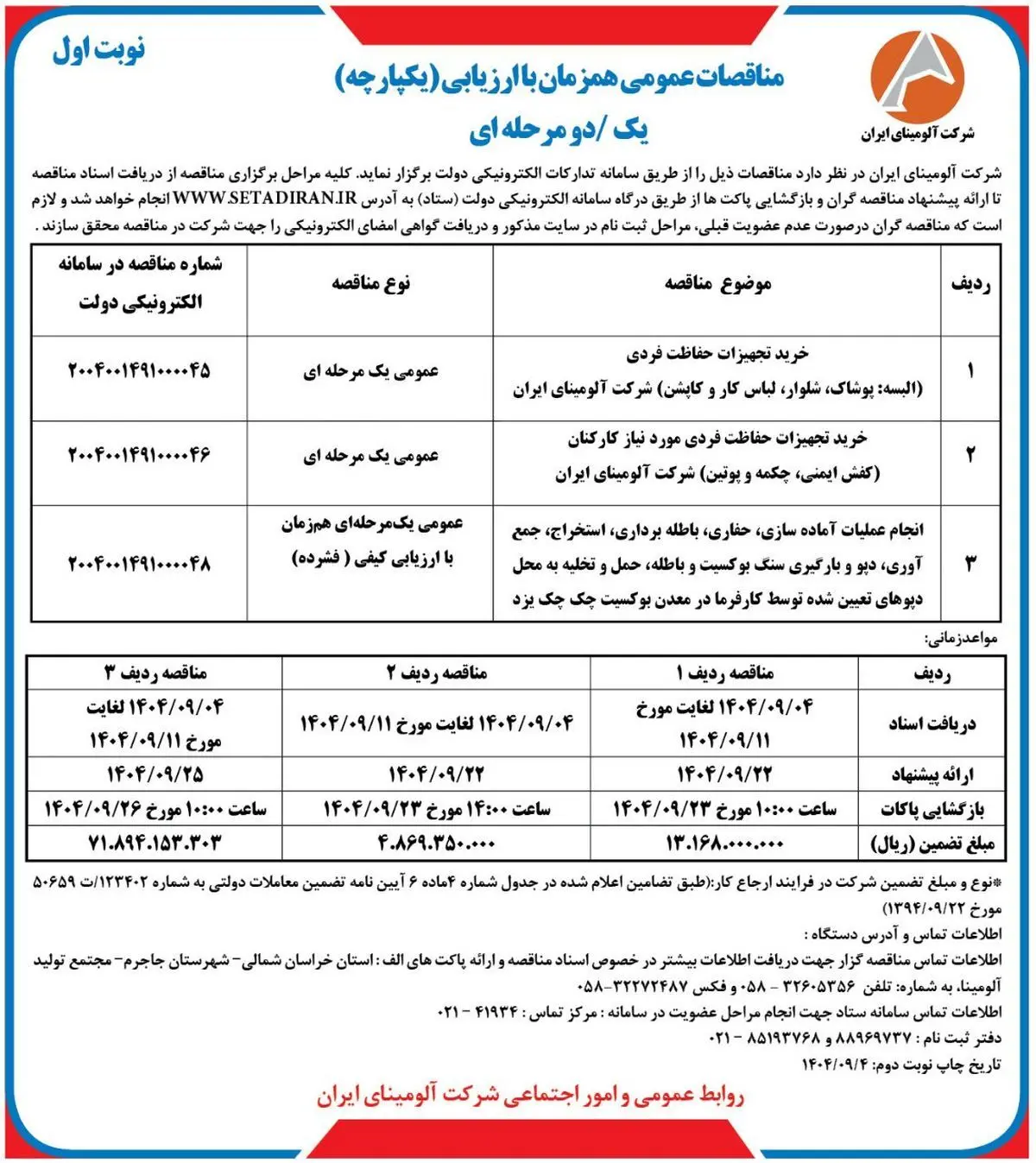 نوبت دوم آگهی مذکور ۴ آذر ماه چاپ و منتشر خواهد شد