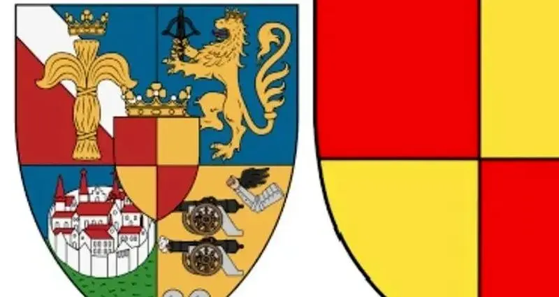 این نشان سلحشوری همراه کلاهخود و پر، احتمالاً سبک منطقهای قرن پانزدهم بوده و شاید با نشانهای رایجتر خاندان توت متفاوت باشد.