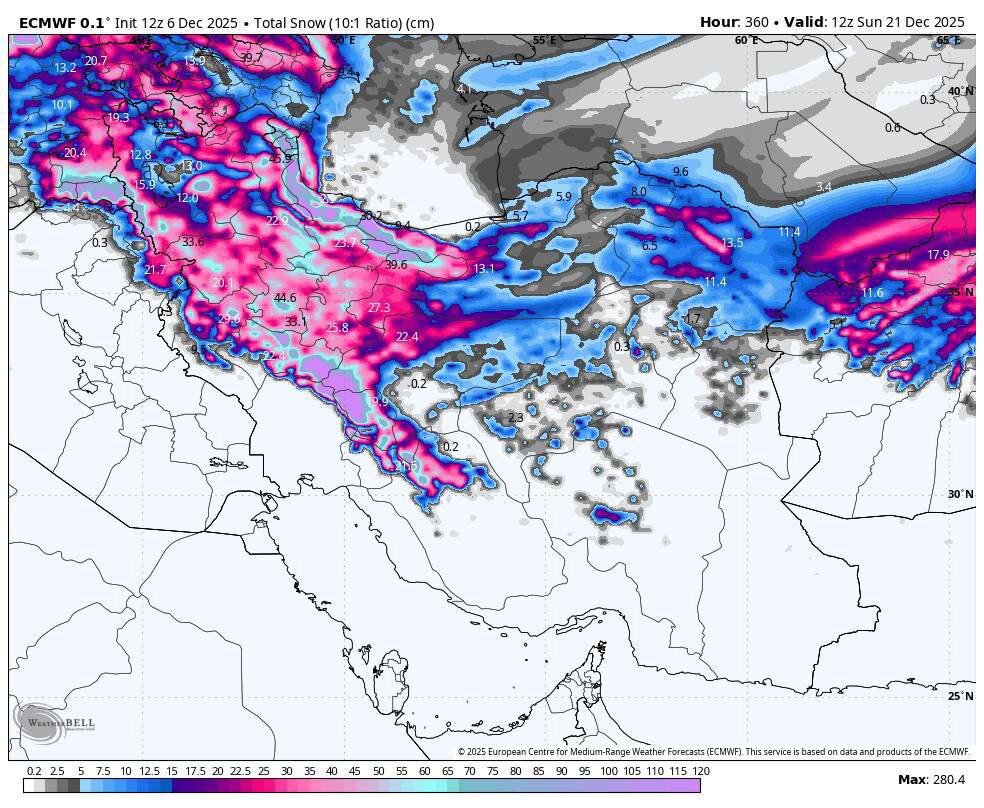 برای روز دوشنبه (۱۷ آذر) نیز این سامانه تقویت میشود و بر اساس پیشبینیها در نیمه غربی کشور، از جمله استانهای آذربایجان غربی، آذربایجان شرقی، اردبیل، کردستان، کرمانشاه، ایلام، لرستان، همدان، مرکزی و قم بارندگی رخ میدهد.
