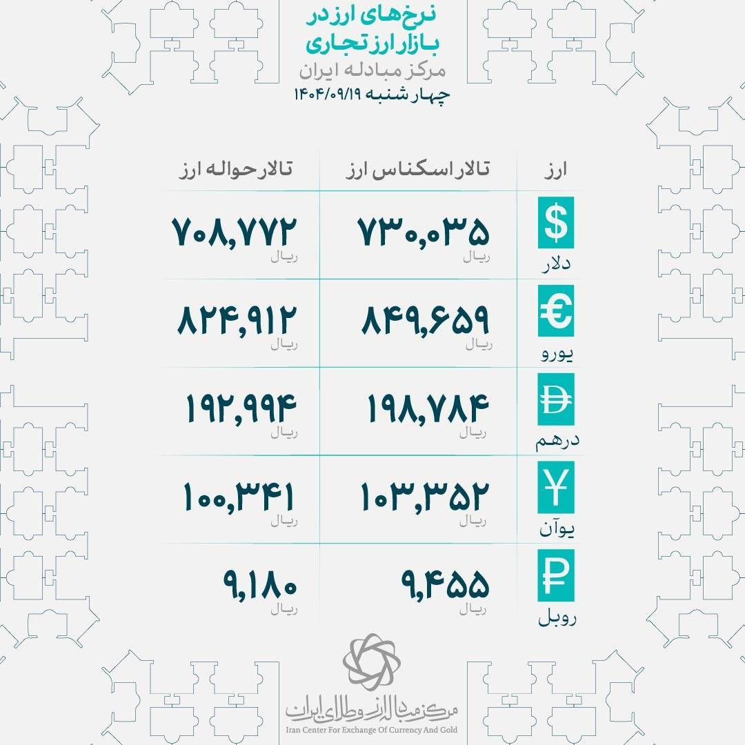 امروز در بازار رسمی، قیمت دلار و یورو نزولی بود. دلار مبادلهای با افزایش نسبت به روز گذشته 73 هزار و 3 تومان نرخگذاری شد و نرخ حواله دلاری، 70 هزار و 877 تومان در معامله بود.