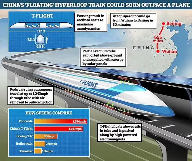 با این سرعت، مسافت ۱۱۰۰ کیلومتری بین پکن و شانگهای که در حال حاضر با ریل پرسرعت حدود ۶ ساعت طول میکشد، به کمتر از یک ساعت و نیم کاهش خواهد یافت. این زمان حتی میتواند با در نظر گرفتن فرآیندهای طولانی فرودگاهی، از زمان سفر هوایی نیز کمتر شود.