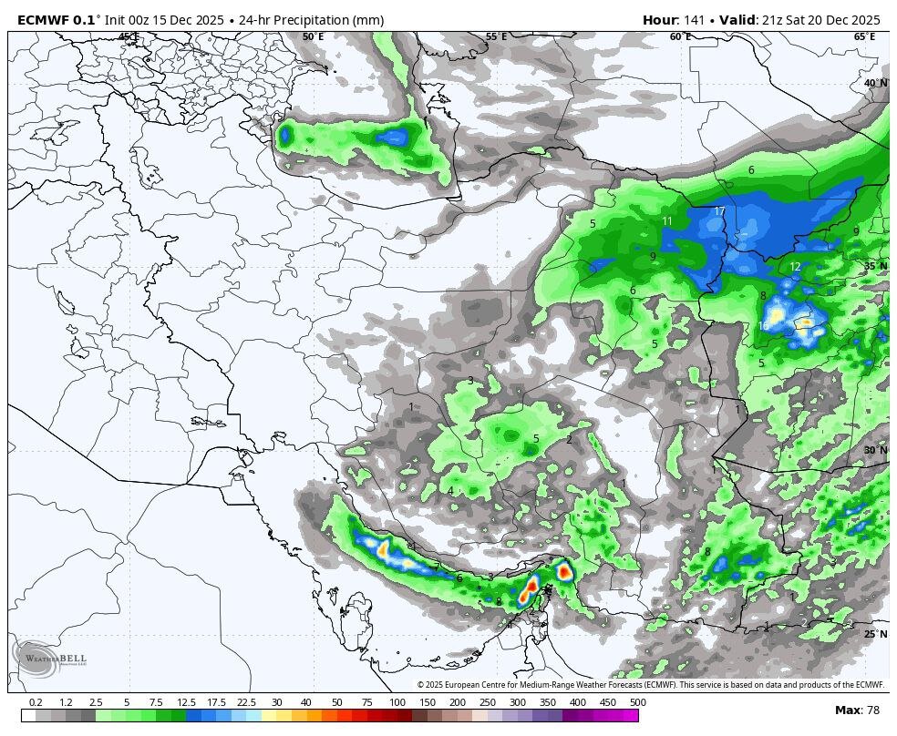 ضیائیان گفت: الگوی بارشها در روز پنجشنبه (۲۶ آذر) تا حد زیادی مشابه روز چهارشنبه است و اغلب استانهای کشور بهجز استانهای سیستان و بلوچستان، آذربایجان غربی و آذربایجان شرقی، بارش خواهند داشت. در این روز، در استان کهگیلویه و بویراحمد مخاطره سیلابی شدن مسیرها وجود دارد و بارشهای سنگین برای این استان پیشبینی میشود.